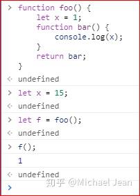 上面代码中,函数foo内部声明了一个函数bar,bar的作用域绑定foo。当我们在foo外部取出bar执行时,变量x指向的是foo内部的x,而不是foo外部的x。正是这种机制,构成了下文要说明的“闭包”现象。