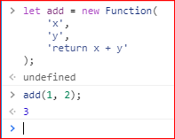 上面代码中,Function构造函数接受三个参数,除了最后一个参数是add函数的“函数体”,其他参数都是add函数的参数。