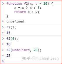 如上图中,f5的参数y默认值为z,但由于并未定义全局变量z,所以报错。