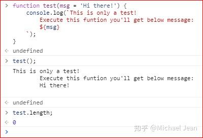 但需要注意的是,由于在ES 6版本后,引入了参数默认值的概念,所有具有默认值的参数将无法通过length属性进行统计,如下图: