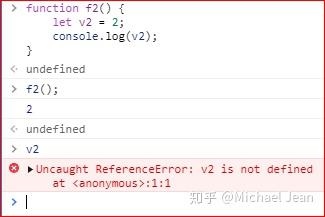 上面代码中,变量v2在函数内部定义,所以是一个局部变量,函数之外就无法读取。